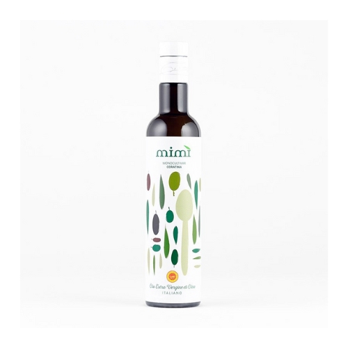 Frantoio: Mimì Cultivar: Coratina Intensità: Fruttato intenso Età media degli ulivi: 50–90 anni Qualità del terreno: Argilloso e calcareo con fondo roccioso Sistema di raccolta: A mano con agevolatori meccanici